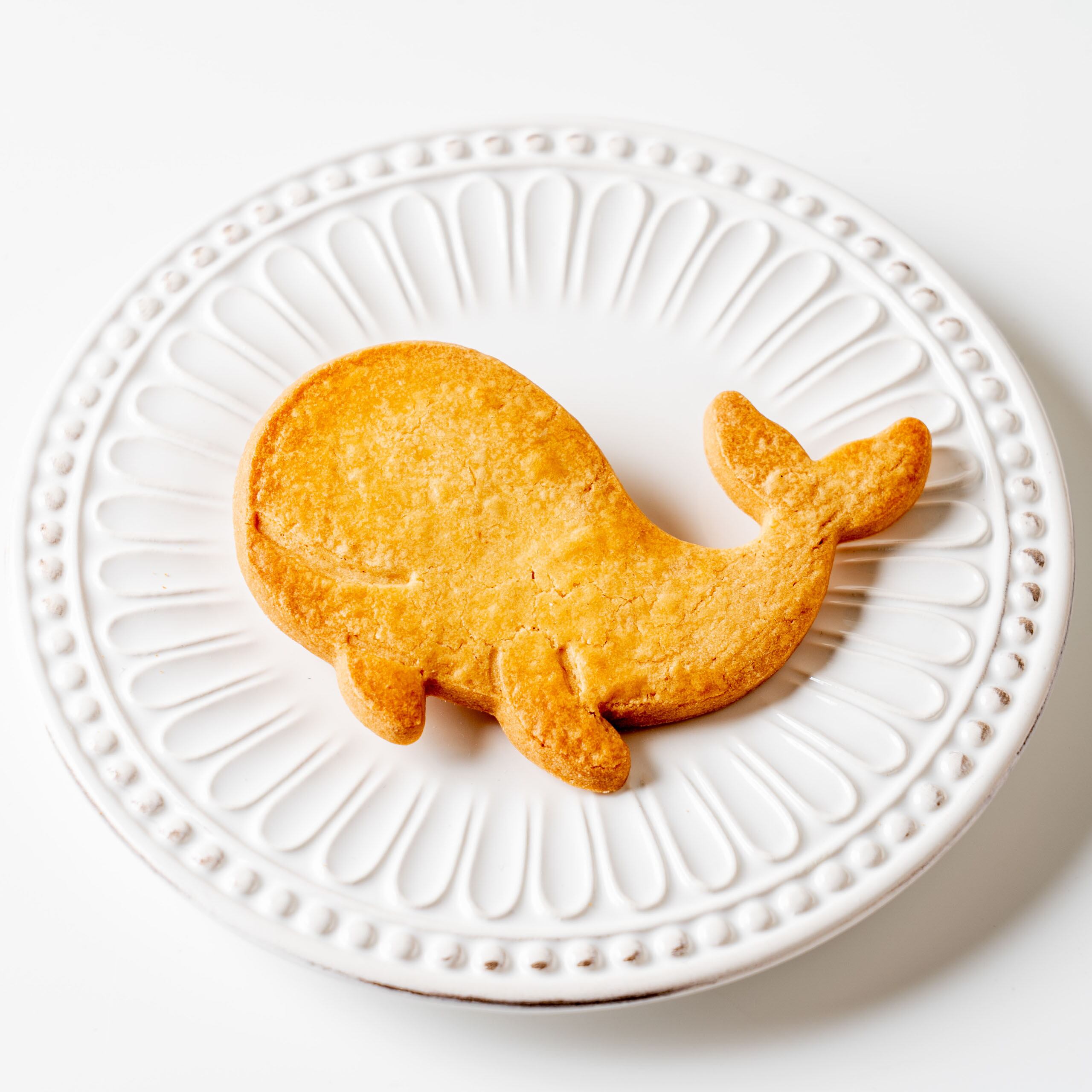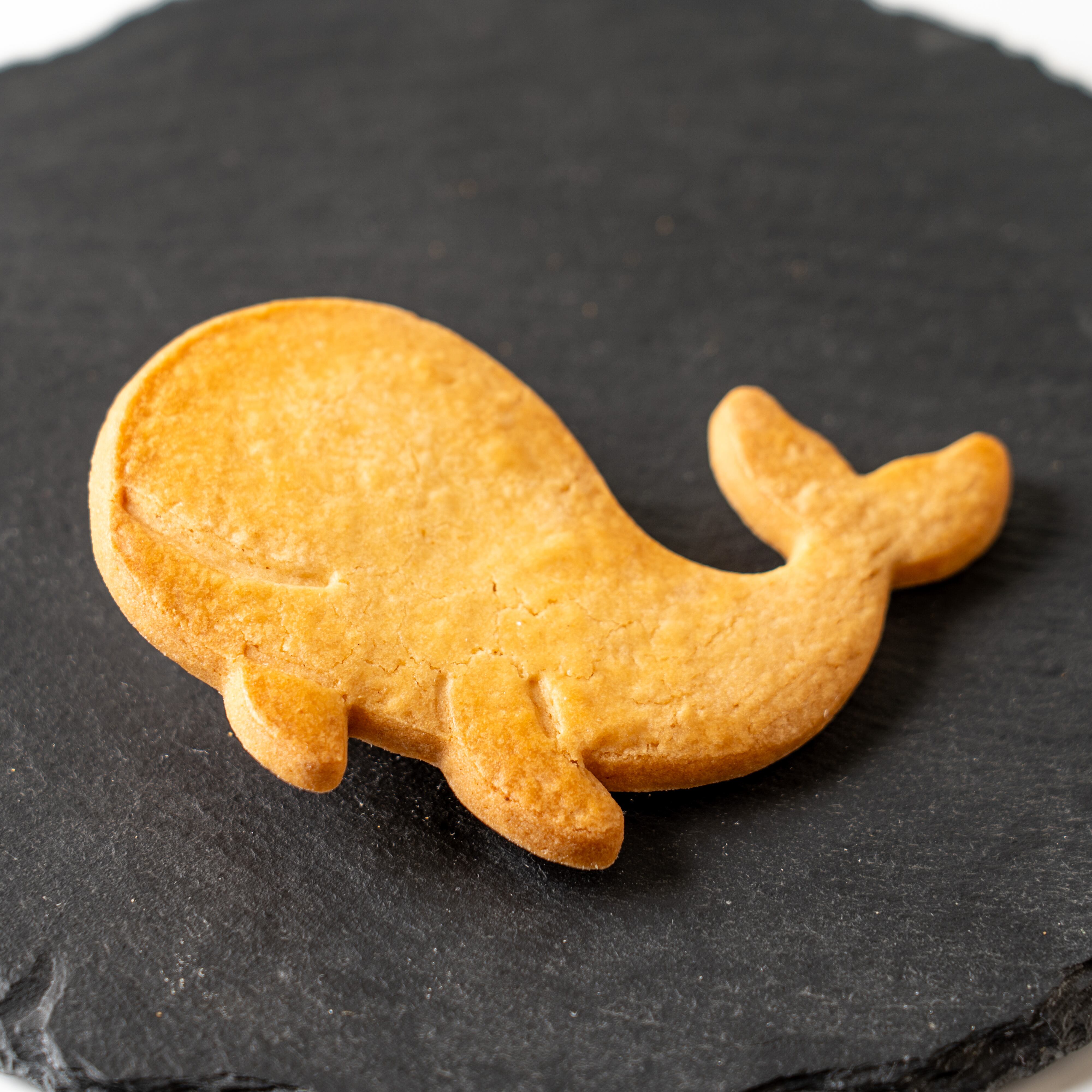 ごきげんな上向きの尾びれと、笑顔がかわいいくじらのクッキー型は、ジョージ&レイのオリジナル。